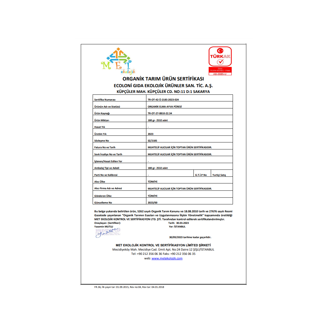 | Organik Elma & Ayva Püresi 180 Gr +6 Ay | x 3 ad. |