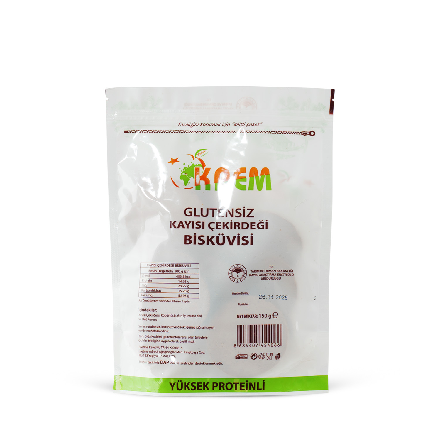 Glutensiz Kayısı Çekirdeği Bisküvisi 150 Gr
