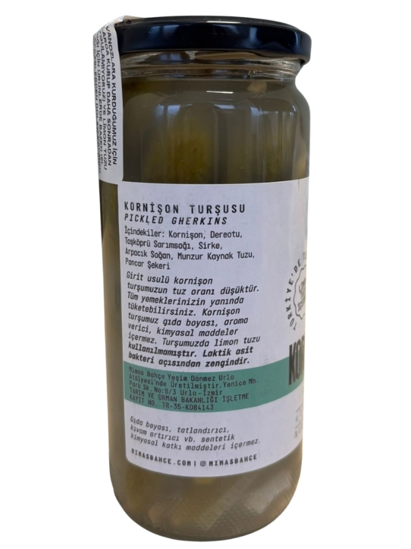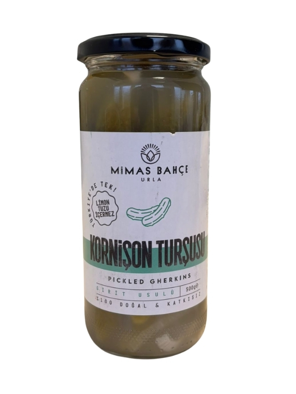 Mimas Bahçe Girit Usulü Kornişon turşumuz limon tuzu veya farklı bir kimyasal kullanmadan yaptık.Düşük tuz oranı ile rahatlıkla tüketebilceğiniz keyifli bir lezzet.