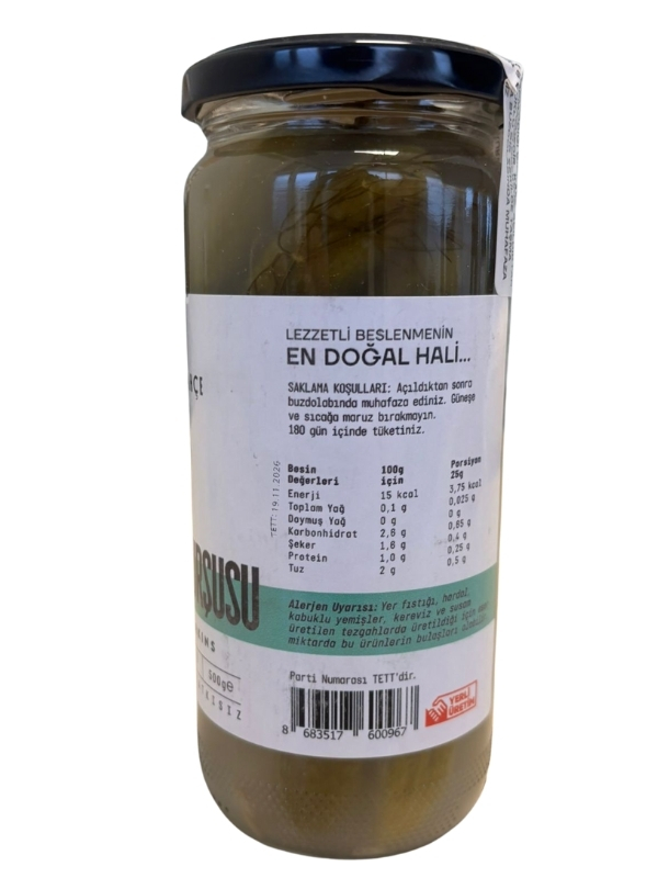 Tüm turşularımız da olduğu gibi kornişon turşumuzda limon tuzu dahil kimyasal kullanmadığımız ve kendi kavanozlarında turşu haline geldikleri için suyunun bulanık olması ve kapağını açtığınızda kaynama görmeniz normaldır.Kaynamanın sebebi laktik asit bakteridir.Laktik asit bakteri bağırsaklarımız için faydalı bir bakteridir.